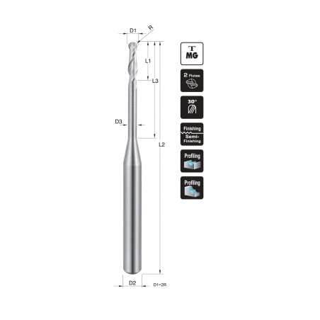 Freza sferica detalonata - gat lung - finisare - 2 dinti unghi 30°