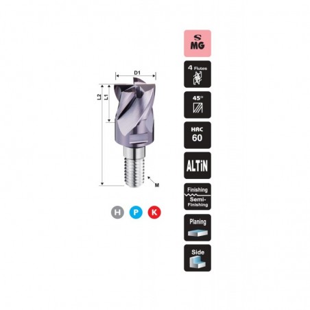Varf cilindro-frontal - finisare - 4 dinti unghi 45° acoperire ALTiN