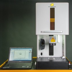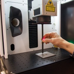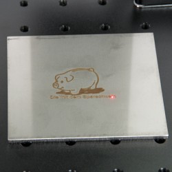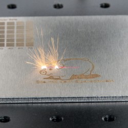 Cel mai fascinant aspect la marcarea Laser este ușurinţa. În software concepeţi cum vor fi dispuse toate, determinaţi dimensiunile. Pe piesa dumneavoastră, veţi vedea un dreptunghi roșu încadrată care corespunde mărimii dorită din proiectul dumneavoastră. Plasaţi piesa de lucru astfel încât rezultatul să fie optim. Apoi apăsaţi butonul sau, și mai bine, întrerupătorul de picior, raza laser coboară și marcajul este gata. Dacă marcajul trebuie să fie mai adânc, setaţi în software rata de repetare și din nou de două ori raza laser coboară, și e gata și lucrarea aceasta.