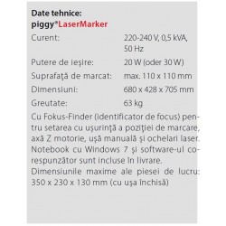 întregul sistem va fi controlat prin intermediul unui PC. Software-ul este ușor de învăţat. Vă prezentăm o dată derularea: amplasaţi pe suprafaţa rastrului logoul dumneavoastră și completaţi textul și/sau codul QR. Așezaţi partea care urmează să fie marcată în cabină. Acum puteţi să vă proiectaţi configuraţia pe suprafaţa uneltei și să controlaţi dacă se potrivește. Dacă totul este în ordine, porniţi piggy®LaserMarker se marchează în câteva secunde și operaţiunea este gata.
