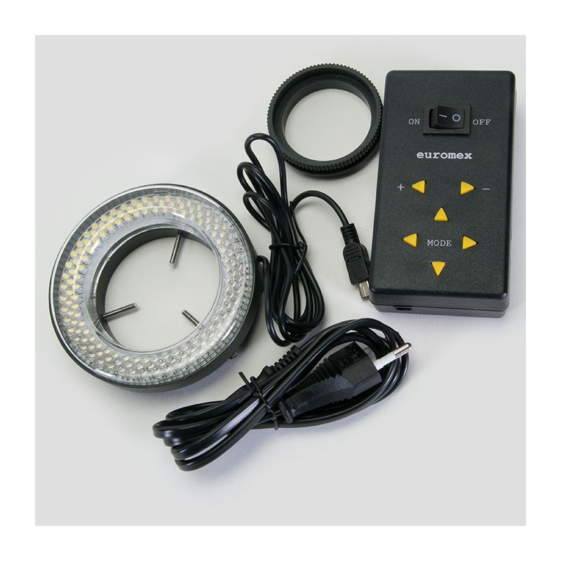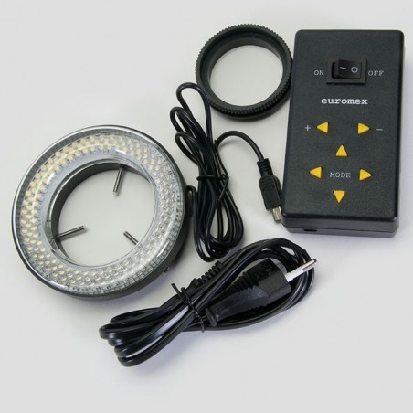 Cu 144 LED-uri, împărţit în 4 segmente, intensitatea luminii, reglabilă 0-100%, temperatura cromatică max. 6500º Kelvin, 230V, 50/60 Hz, distanţa de lucru 50-200 mm, Ø interior 61 mm.