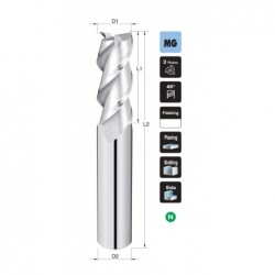 Freza cilindro-frontala din carbura pentru AL - finisare - 3 dinti unghi 45°