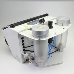 Aparat de microsablare foarte bine construit. Recipientele individuale pentru materialele de sablare pot fi dotate rapid şi uşor. Schimbarea recipientelor cu material de sablare se produce cu ajutorul unui întrerupător de picior.