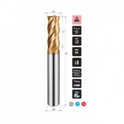 Freza cilindro-frontala din carbura - finisare - 4 dinti unghi 35° acoperire i8