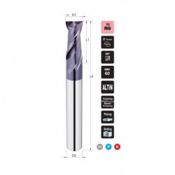 Freza cilindro-frontala din carbura - coada lunga - finisare - 2 dinti unghi 35° acoperire ALTiN
